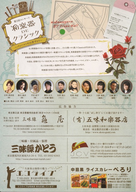 糸竹の響きと題しました、第6回音楽会が今月27日に開催されます。